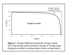 Energy cliff shown in the Figure 1 tells us that a very low value of EROI cannot provide a sustainable source of energy. Setting up of energy infrastructure and generation of electricity involves flow of construction material as well as water. Lower the EROI, larger will be the environmental foot-print of a given source of energy. Energy economists are coming to understand these issues only now and when this understanding becomes widespread, energy planners will be able to frame policies to monetise gains associated with energy sources having high value of EROI. In the literature, one can see some criticism of the concept of EROI because different publications give different numbers. The difference comes from issues of boundary and consistency, but there is no doubt about nuclear, hydro, wind and coal having a high EROI.