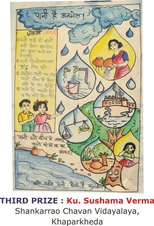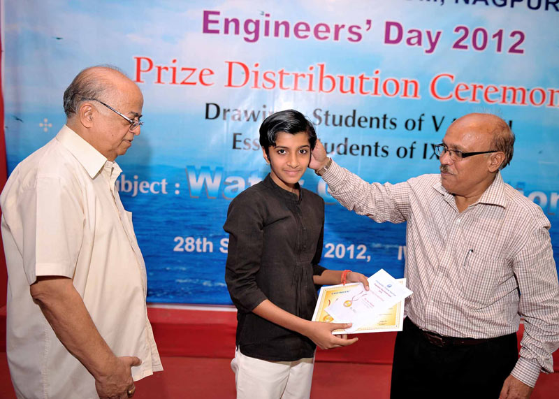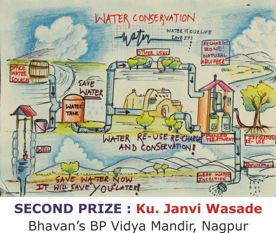 Drawing & Essay Competitions on Water Conservationarranged as part of Engineers' Day 2012, CelebrationMany Engineers/Concerned organisation have extended valuable help by giving suitable write up on our theme "New Challenges in Water Management" and also many slogans, which has made our Souvenir 2012, valuable and worth reading. To create awareness about the importance of our theme, we have organised Drawing Competition for students of 5th to 8th standard, and an Essay Competition for students of 9th and 10th standard. It got very good response about 35 schools participated in the competition. The winners are suitably awarded. Our committee members again did excellent work to make the Engineers' Day 2012 celebrated a grand success. Results of Competitions SECOND PRIZE : Ku. Janvi Wasade, Bhavans BP Vidya Mandir, Nagpur THIRD PRIZE : Ku. Sushama R. Verma, Shankarrao Chavan Vidayalaya, Khaparkheda |