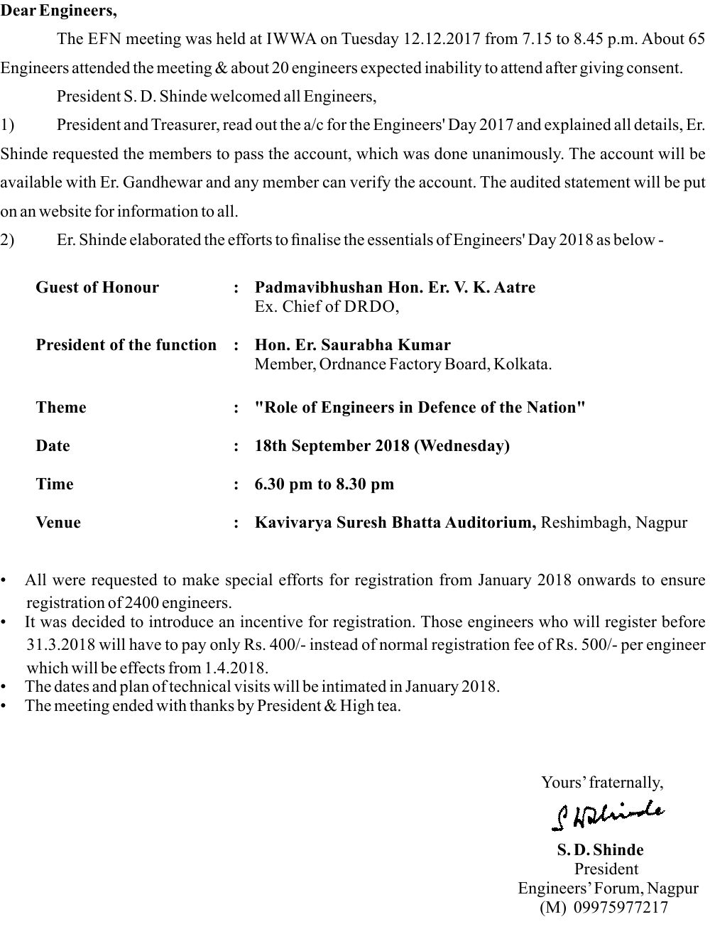 Audit Meeting Report on 12.12.2017 at IWWA, Nagpur
